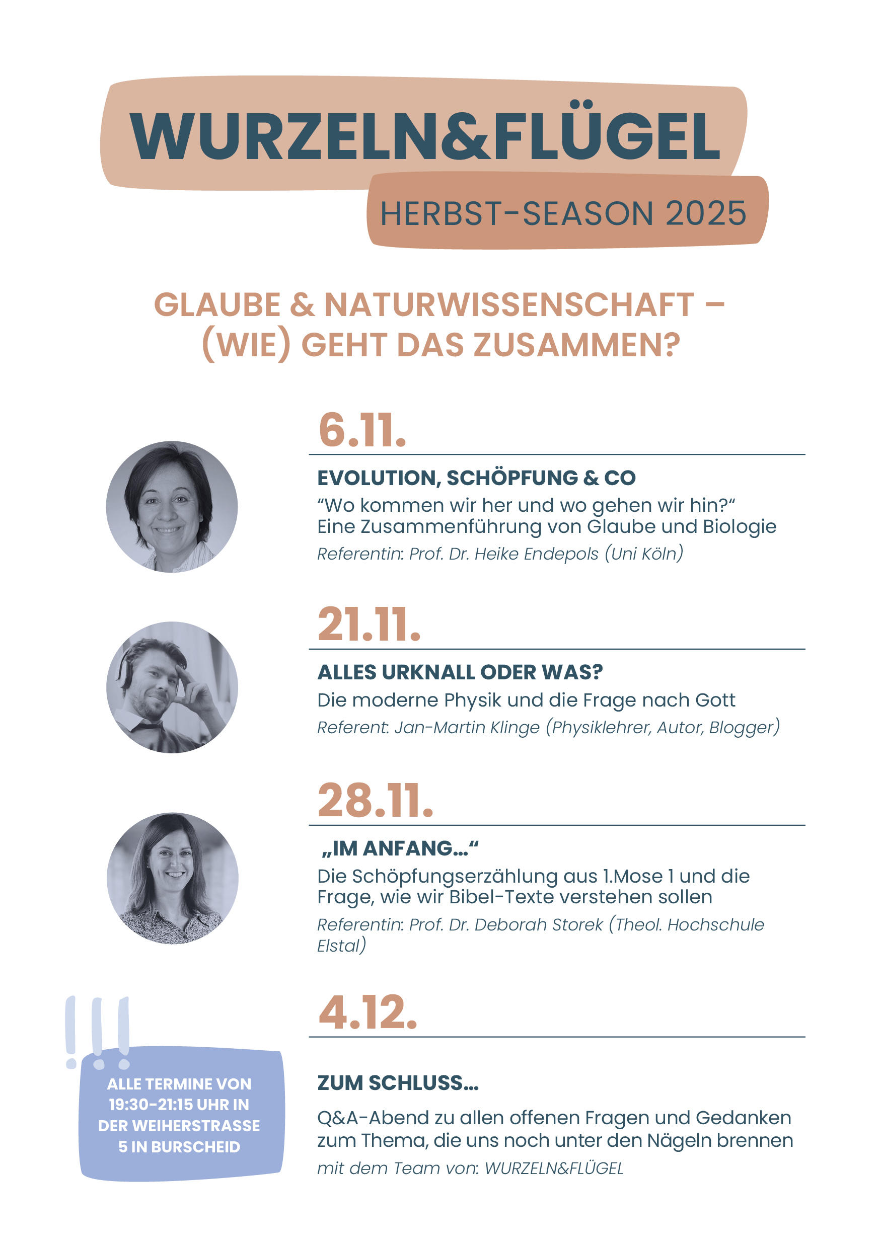 Unter diesem Motto veranstalten wir im November und Dezember vier Abende mit spannenden Gästen.